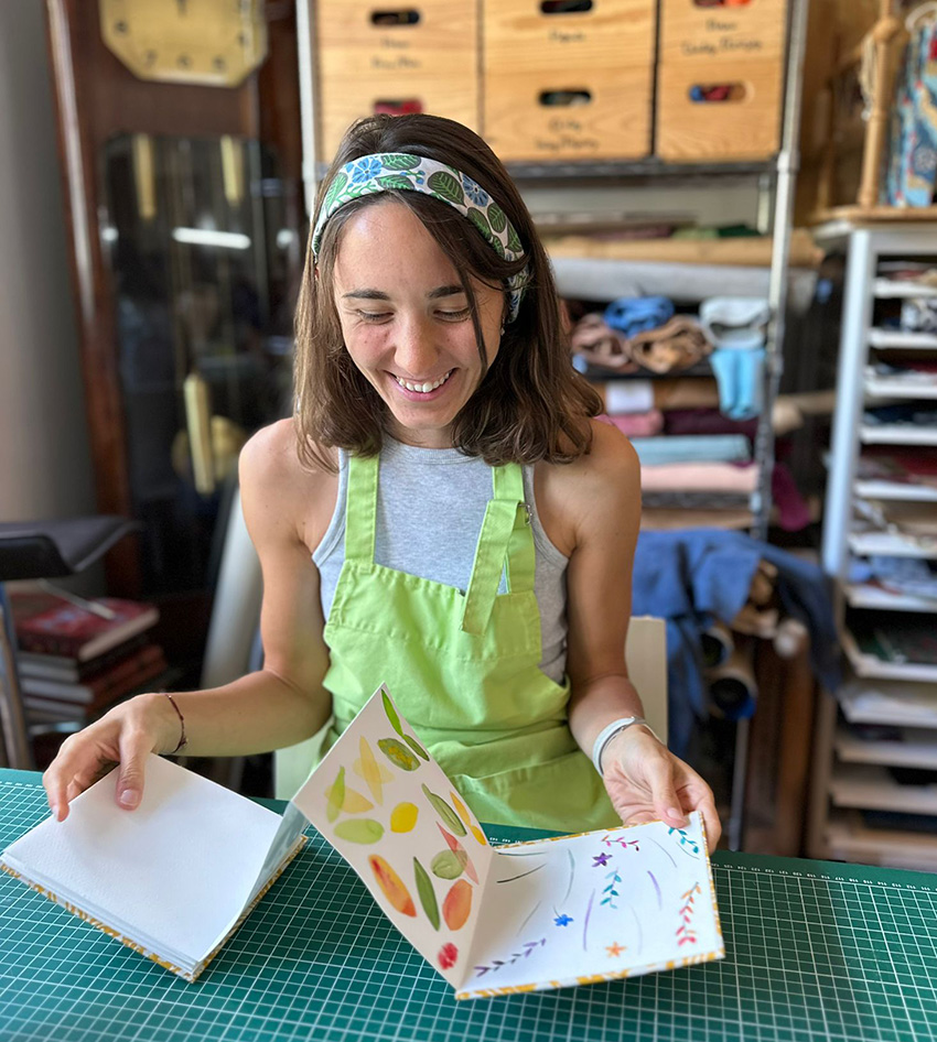 Choix des matières, pliage, couvrure. Papier aquarelle 300gr/m2 Fabriano® fourni – Votre carnet fini aura un format variable selon la date de l’atelier.