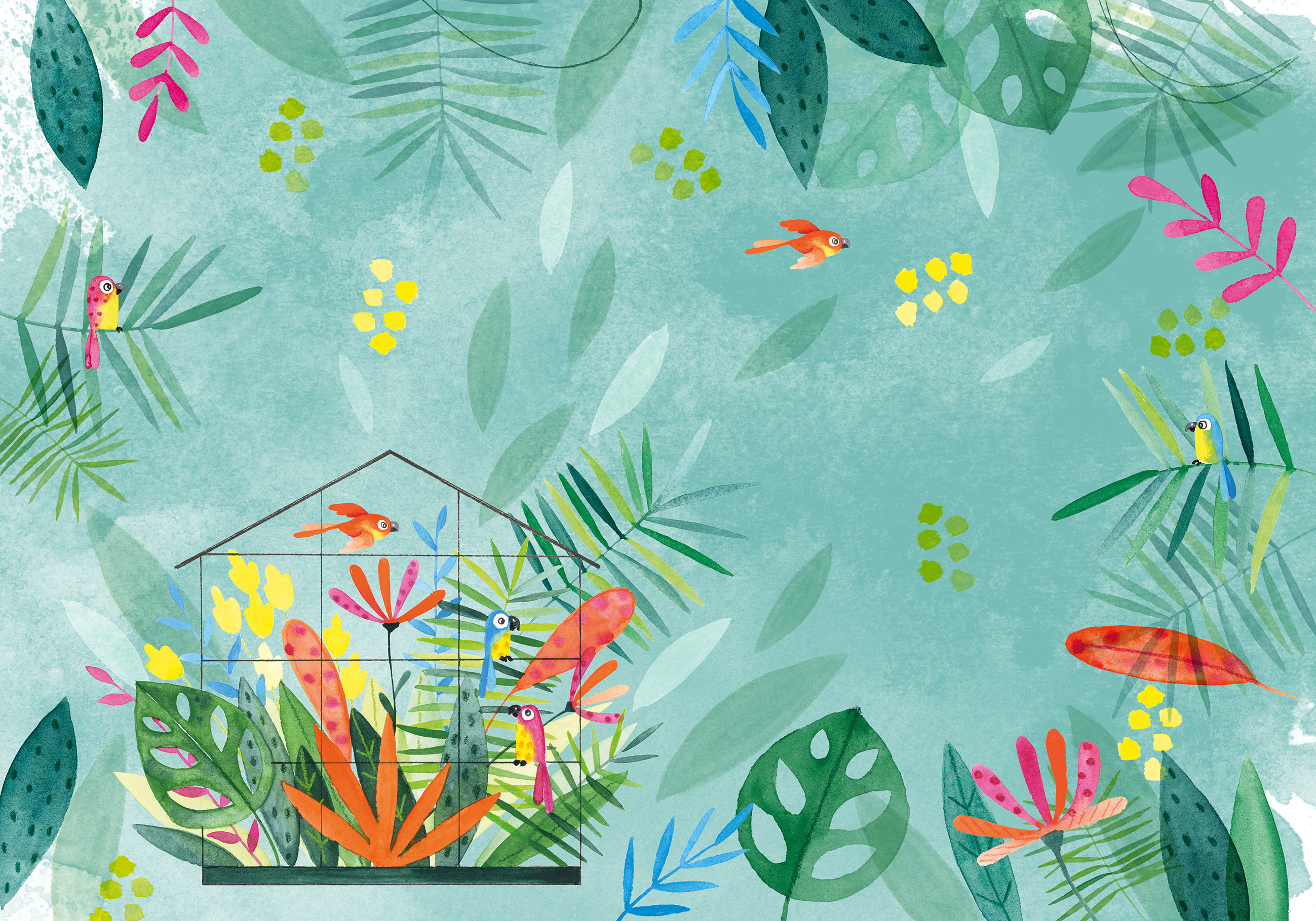 Création à l’aquarelle d’un motif placé et d’un motif allover pour la collection été 2025.